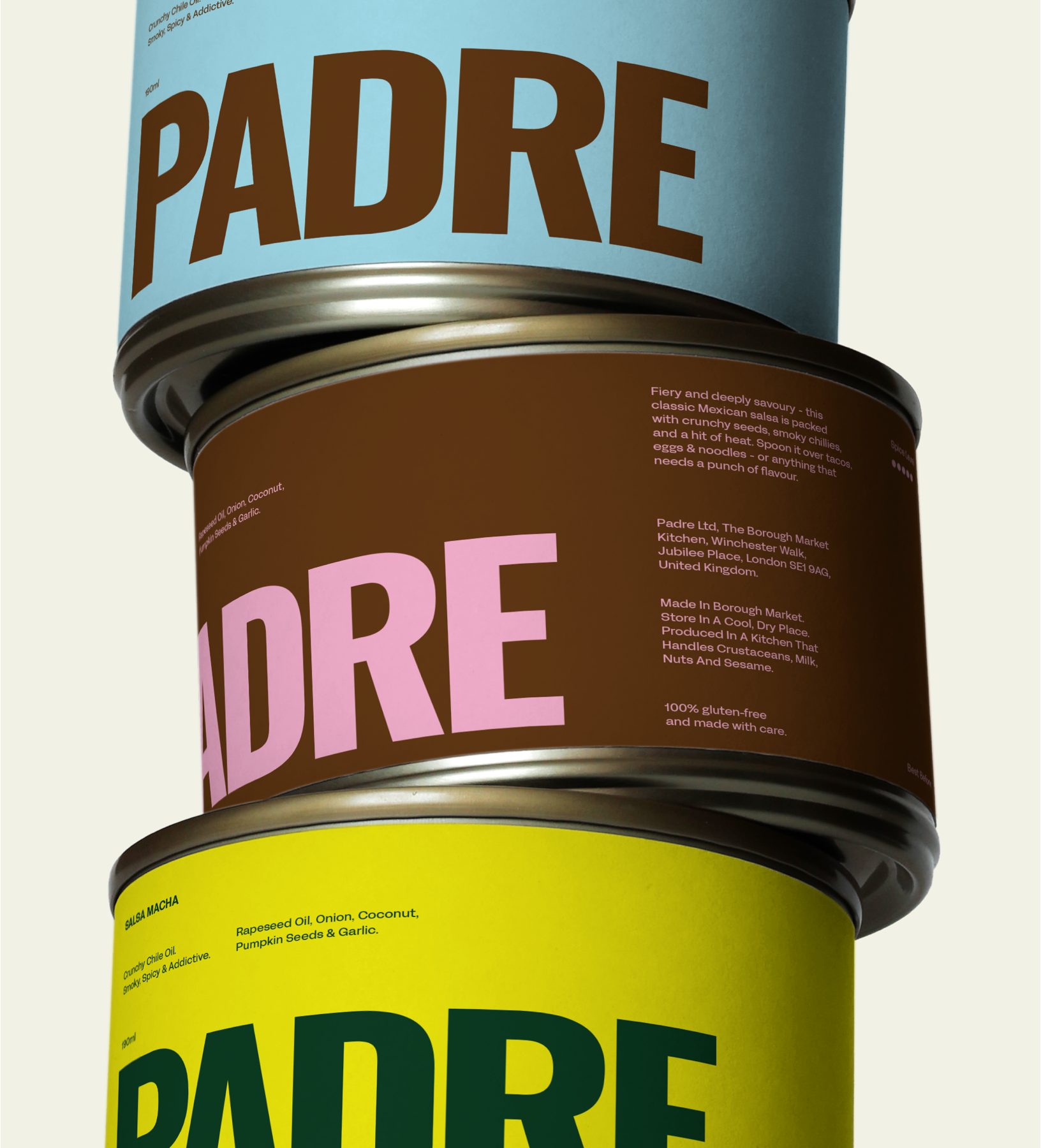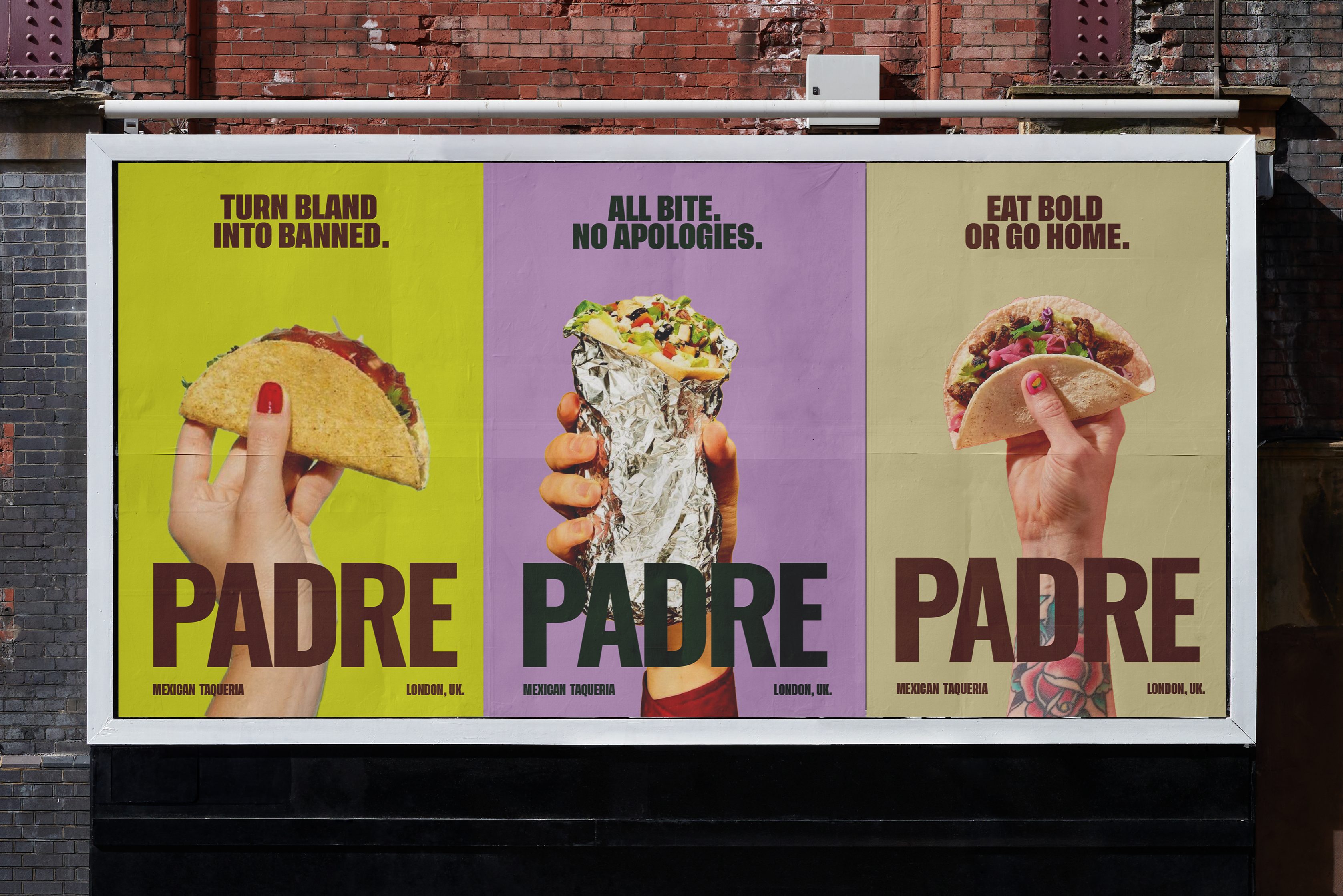 The project spans a brand identity refresh, packaging design for takeaway and retail, bold copywriting and campaign design to capture Padre’s attitude & define a cohesive visual language . From a complete typography system overhaul, creating an entirley new color system, creating rebellious and provocative tone of voice,  a cohesive packaging system and lastly a campaign design that bursts with heat and energy. The goal was to create a brand world that feels as unforgettable as every bite - Padre’s new identity unites authenticity and edge, ensuring it stands out in London’s competitive food scene and resonates with food lovers far beyond the market.