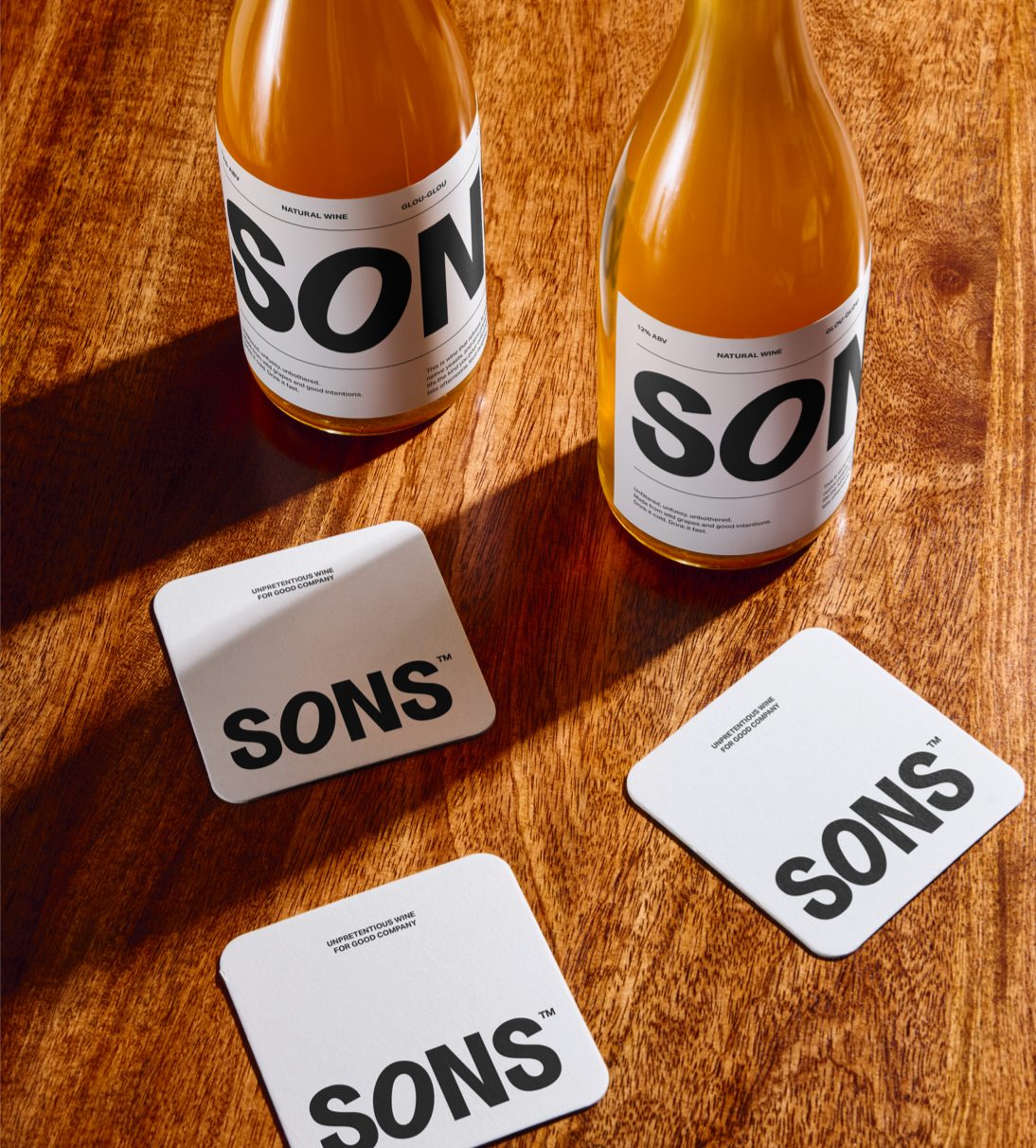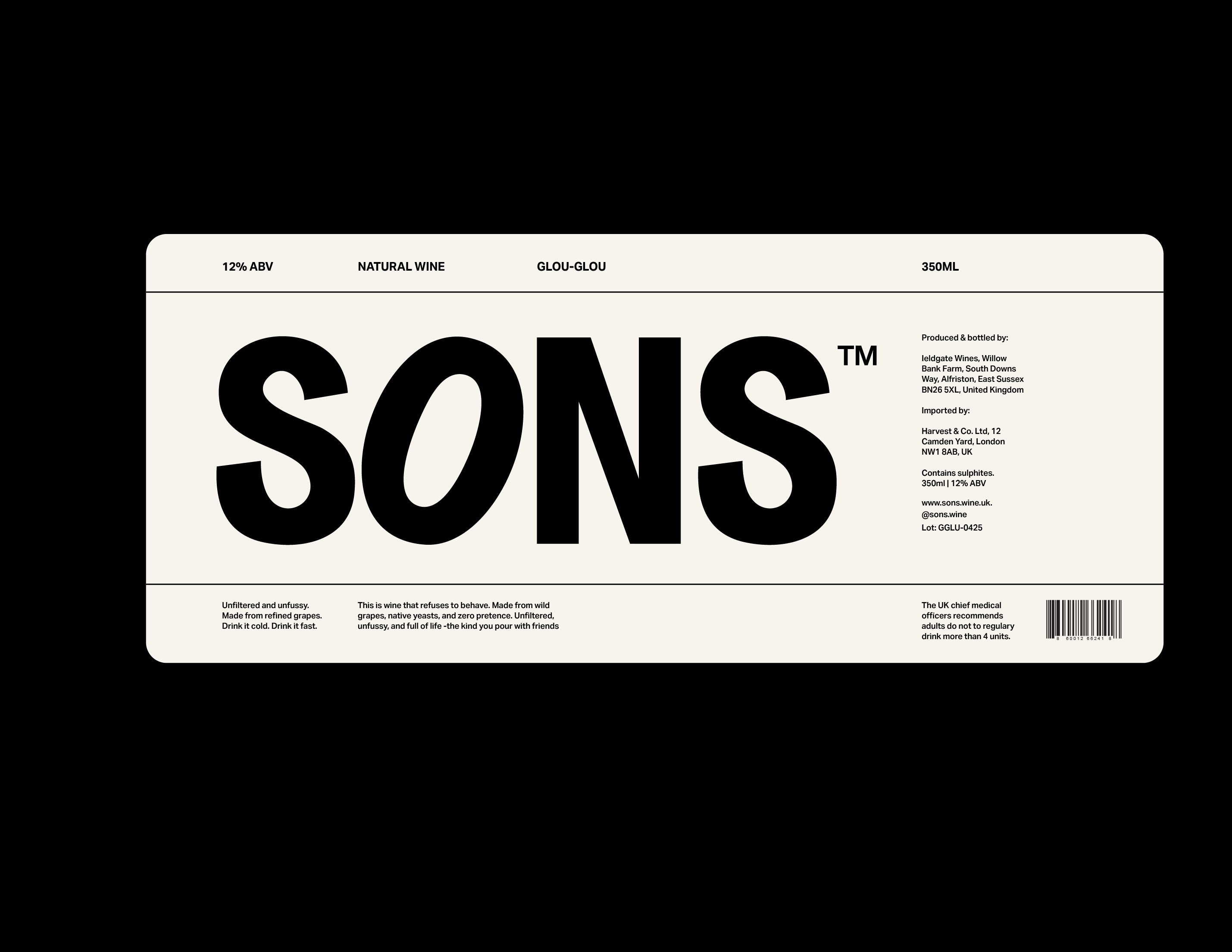 SONS is a UK-based wine brand built around the idea of “unpretentious wine for good company.” The identity strips away the excess often found in wine branding, replacing it with bold simplicity and confident restraint. The logomark, set in a heavy sans serif, anchors the brand with clarity and presence — direct, modern, and unapologetically straightforward. The typography system follows suit: clean, utilitarian, and highly legible, allowing tone and layout to do the expressive work.